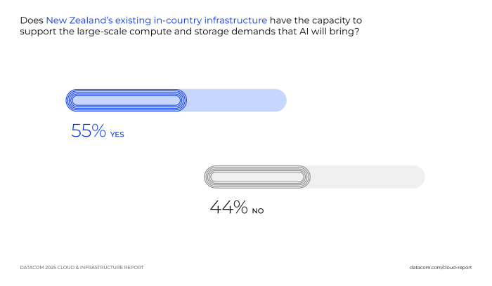 AI is accelerating the need for cloud maturity, but it’s also exposing gaps in data governance and security. The report shows that 61% of New Zealand organisations are concerned about data sovereignty, and many are choosing to keep data processing in-country to mitigate risk.